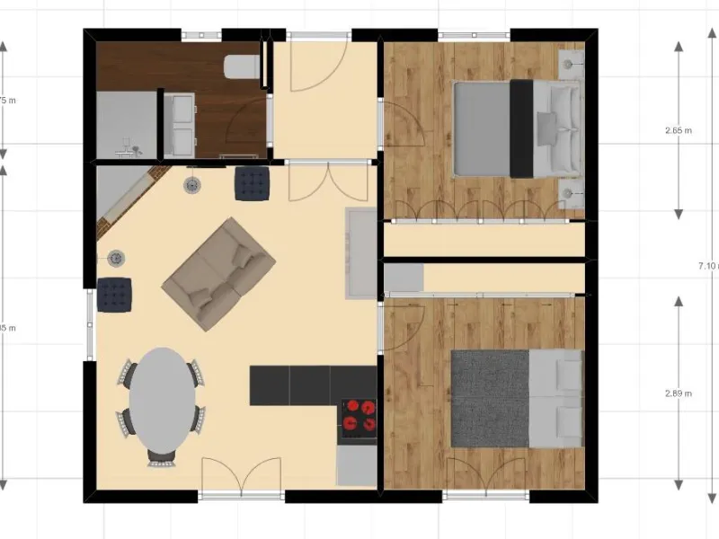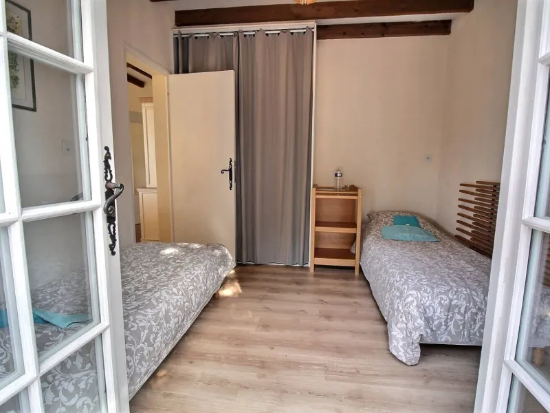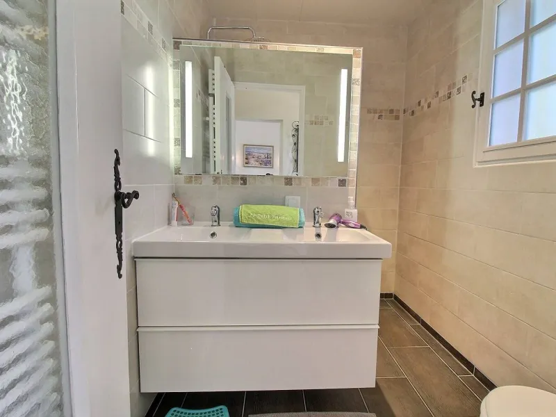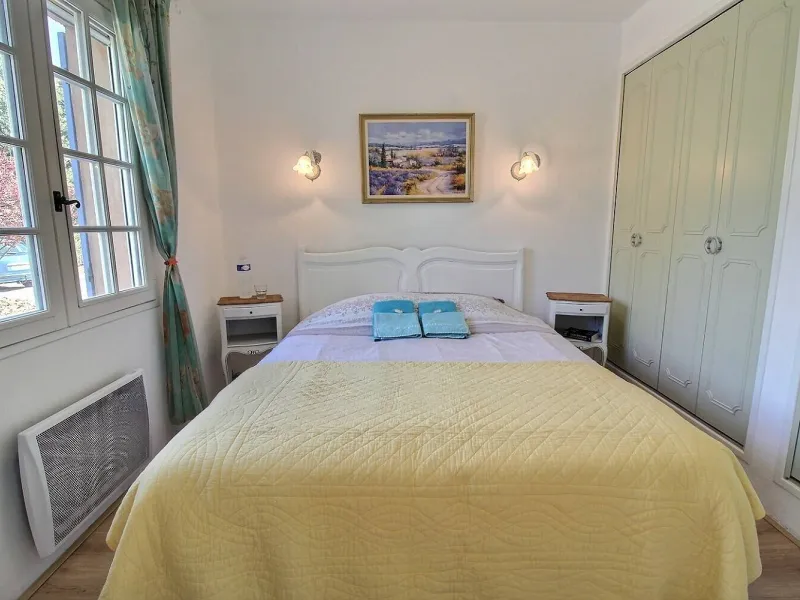 Plain pied, parking devant, grands lits, climatisation, douche italienne, Terrasse plein sud, BBQ et cuisine équipée.