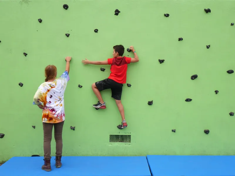 Loisirs: terrains sportifs : 4 terrains de tennis, salle de squash, bloc d'escalade, terrain multisport, tables de Ping-pong, terrains de pétanque, terrain de volleyball (matériel sportif – raquettes etc – mis à disposition avec caution). Jeux pour enfants. Baby-foot et billard (payants), local à vélo fermé. Espace TV, bibliothèque et salon de lecture.