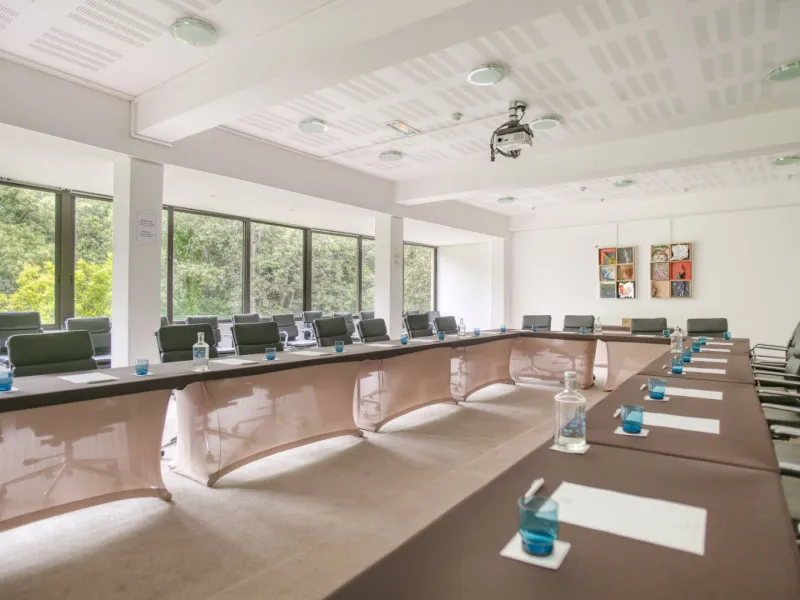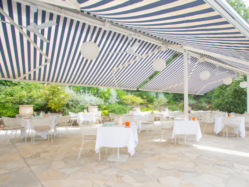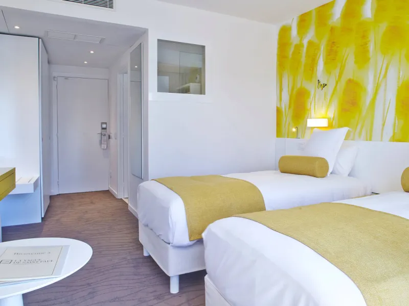 La Vague de Saint-Paul offers 50 rooms and suites, a restaurant, seminar rooms, a spa, a beautiful outdoor swimming pool, a petanque court, a tennis court, all within a stone's throw (2.5km) of the famous medieval village of Saint-Paul de Vence.Here, the 70's setting hides a modern design decoration. The luxurious and contemporary furniture harmonizes very well with the immaculate white of the walls, the mix of colors of the decoration and the greenery of the park. In one breath, you are transported to another time.