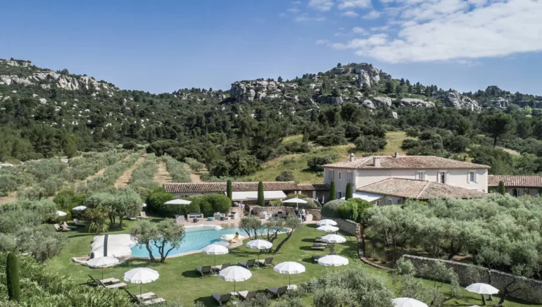 At the heart of an olive grove, a pleasant Provençal house with discreet and refined decor. A complete change of scenery with an amazing landscaped pool, rock garden, submerged beach and integrated spa. Gourmet salads and grilled lunch are served around the pool for guests. Awarded the "Hotels au natural" and "Hosts of the Regional Natural Park of the Alpilles" labels, the Mas de l'Oulivié stands out for its eco-responsible practices and actions in favour of environmental protection.