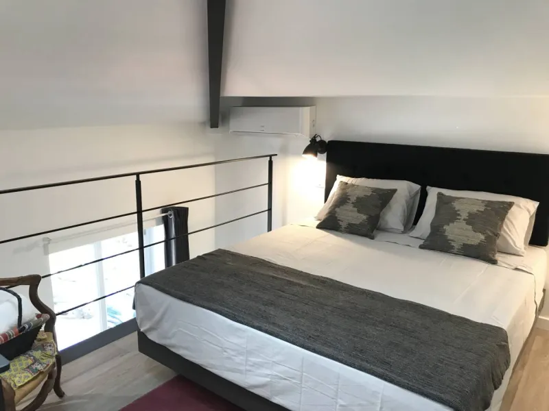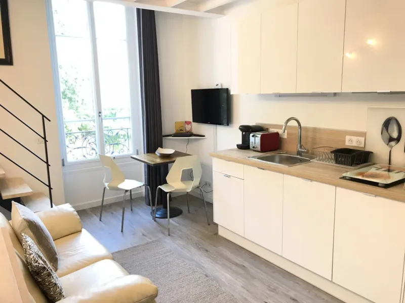 Bright and comfortable with optimized insulation, the atypical Ambre duplex is located in the Belle Époque villa "Le Nid", close to shops and tramway. It has access to the landscaped garden. 1st floor. 1 bed 160x200.Minimum 5 nights.