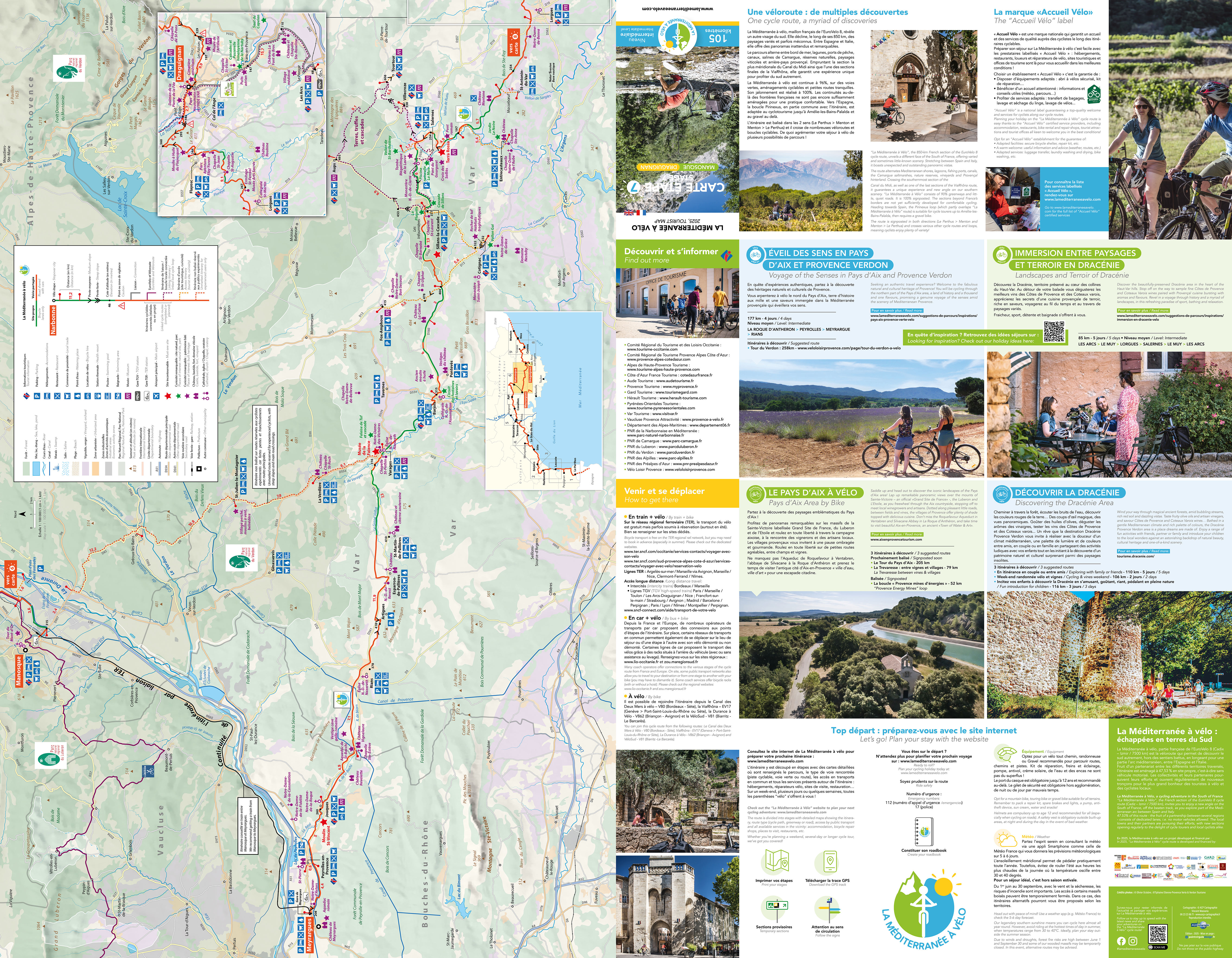 Maps access : n°1: Le Perthus - Leucate | n°2: Leucate - Béziers | n°3: Béziers - Grau-du-Roi | n°4: Grau-du-Roi - Tarascon | n°5 :Tarascon - Apt | n°6: Apt - Manosque | n°7: Manosque - Draguignan | n°8: Draguignan - Cannes | n°9: Cannes - Menton