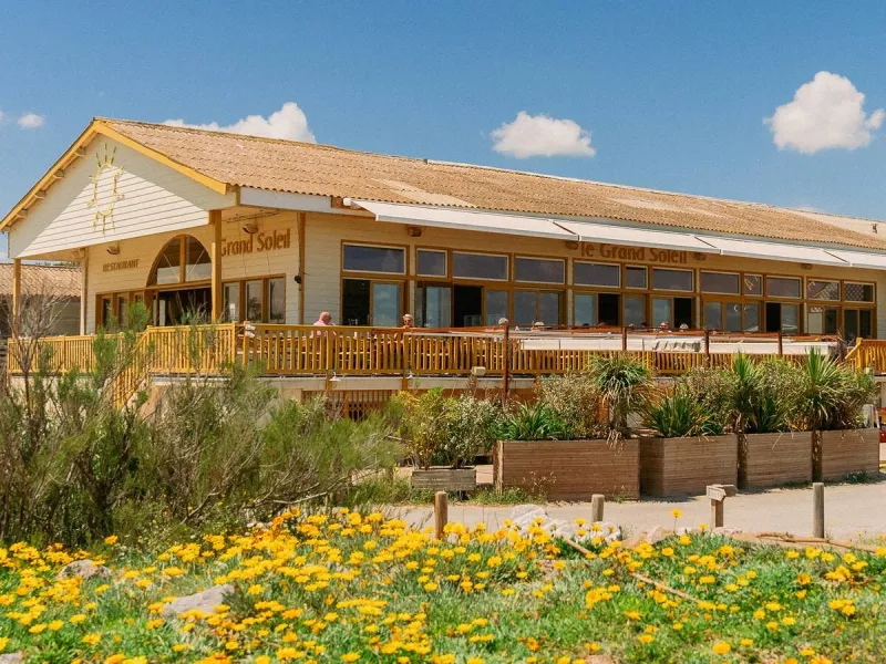 LE GRAND SOLEILAccueil VéloRestaurants This establishment is Accueil Vélo certified and commits to welcoming cyclists. View its commitmentsDescription Bar, restaurant, snack bar, caterer.Interested in this establishment? Visit their website to book or find out more. Call Email Site webLocalisationFront de mer 11430 GruissanMap options Default map background Satellite mapCaption Je débute/En famille J'ai l'habitude Ça grimpeInterested in this establishment? Visit their website to book or find out more. Call Email Site webDo you have information to share about this establishment? Highlight a problem Contacter